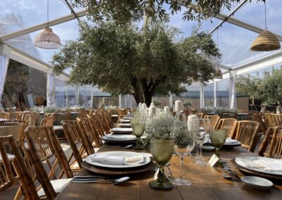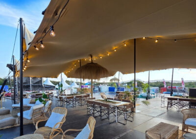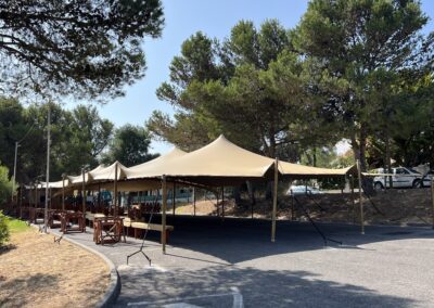 - Tendas Stretch: ideais para quem procura um ambiente com forte impacto visual, mais descontraído e integrado na paisagem, mantendo a funcionalidade e a proteção.